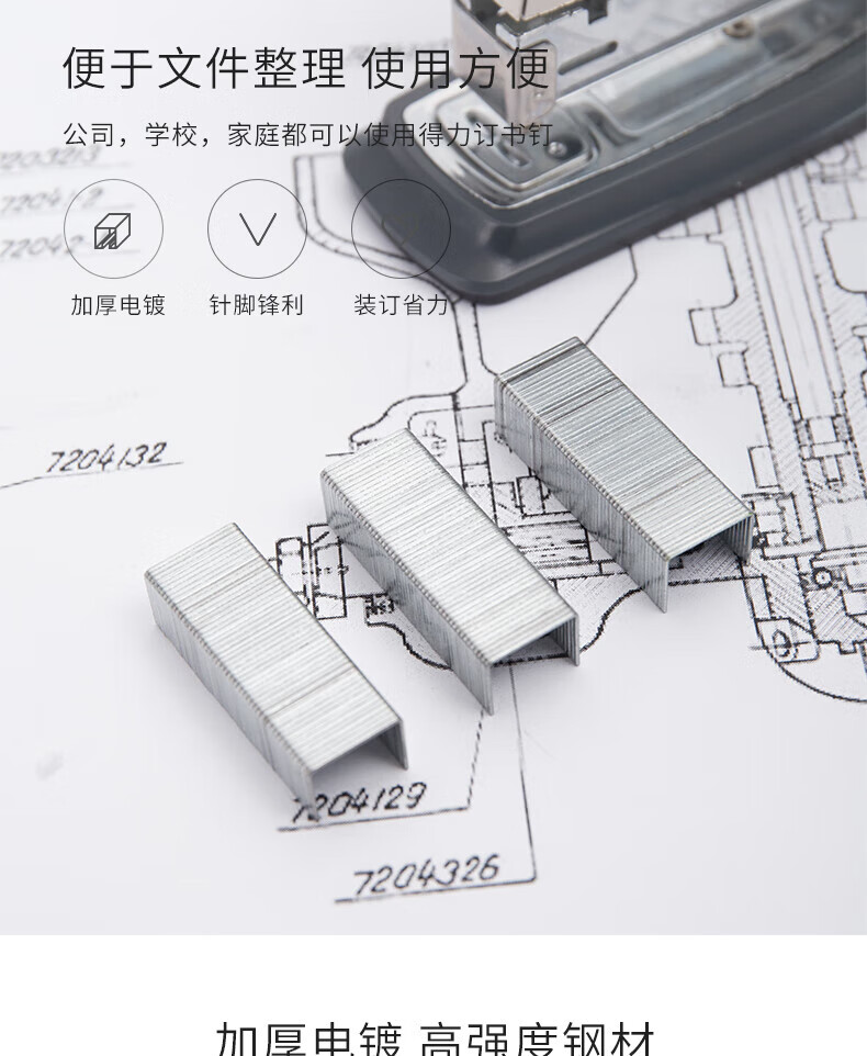 商品名称:得力 0015厚层订书钉23/10(500枚/盒)