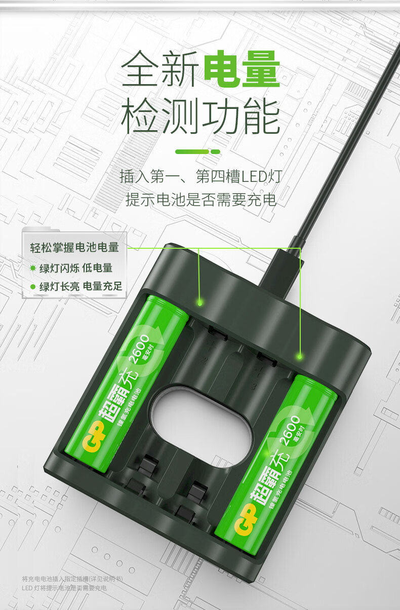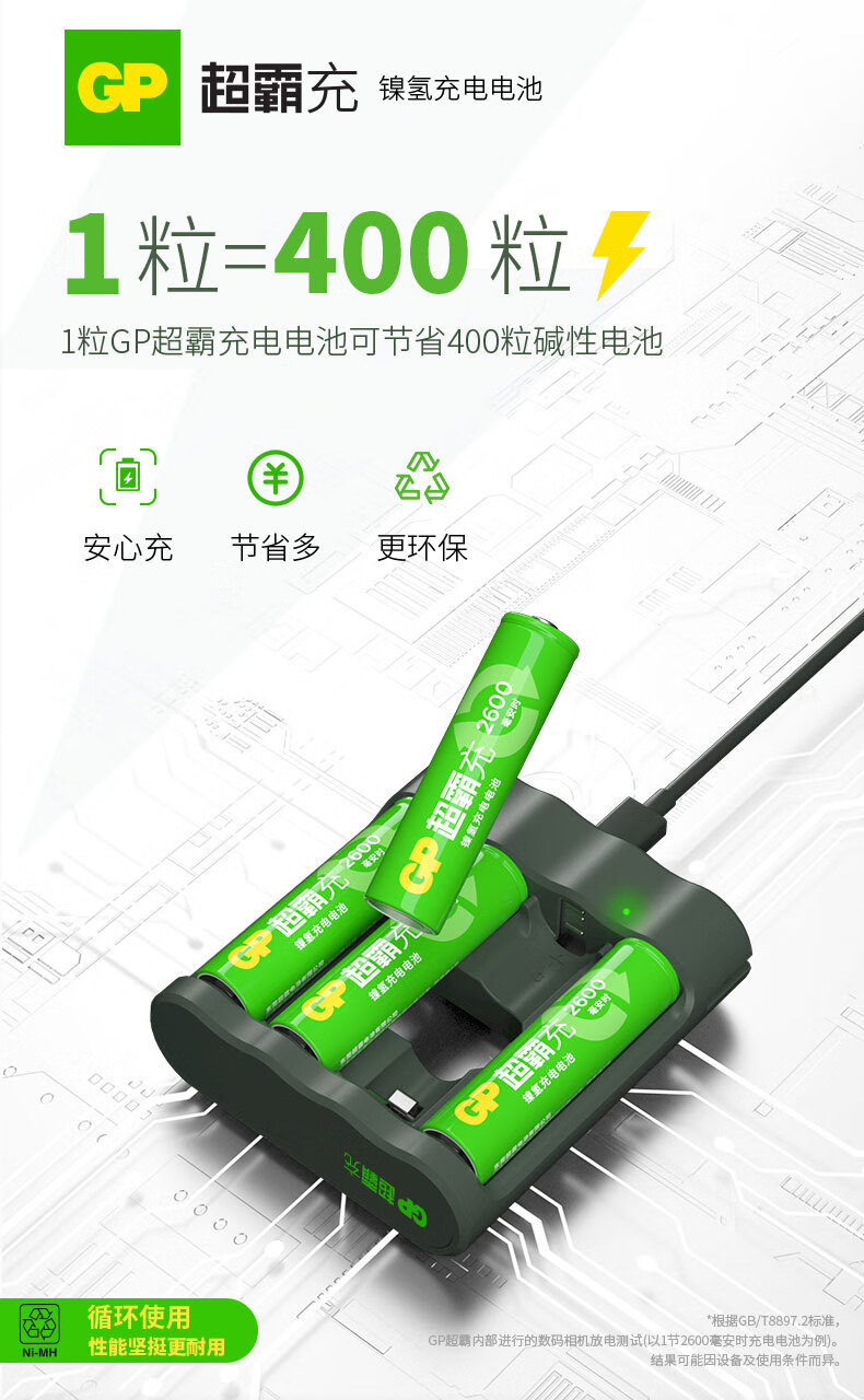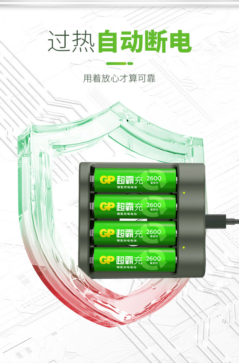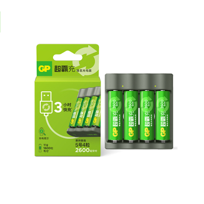 自营超霸 五号充电电池1.2伏4粒2600mAh+四座可充电套装