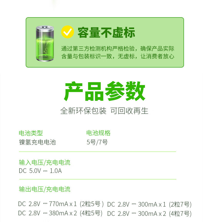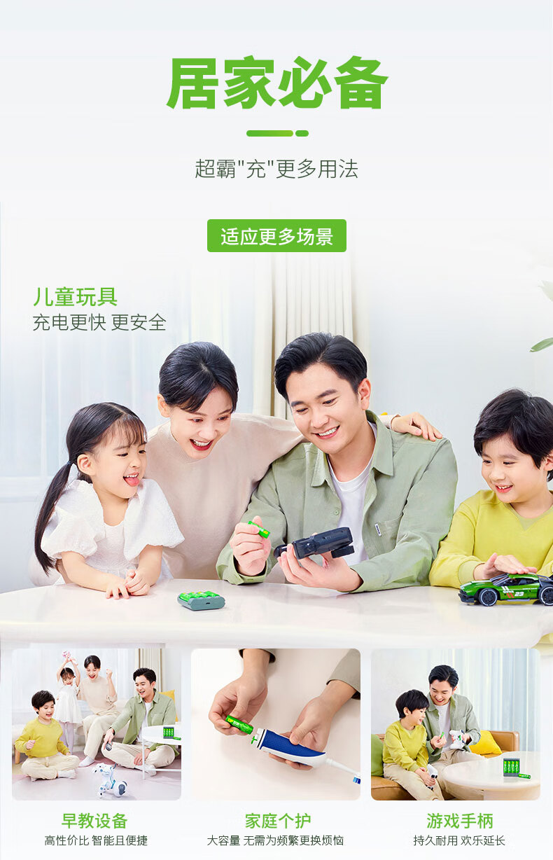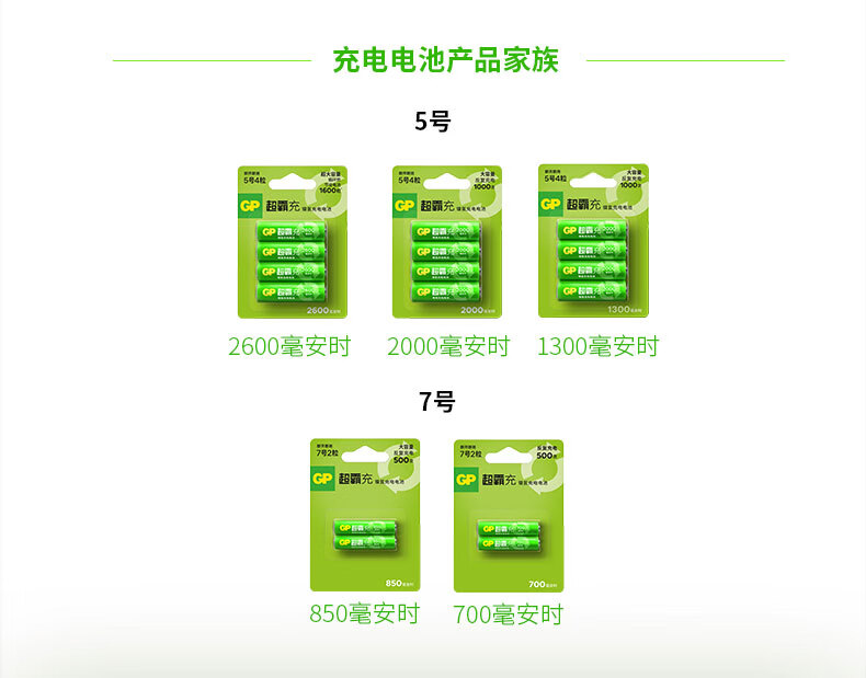 商品名称:超霸 五号充电电池1.2伏4粒2600mAh+四座可充电套装