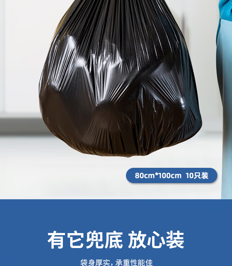 商品名称:得力 9576黑色垃圾袋1卷(10只)80x100cm