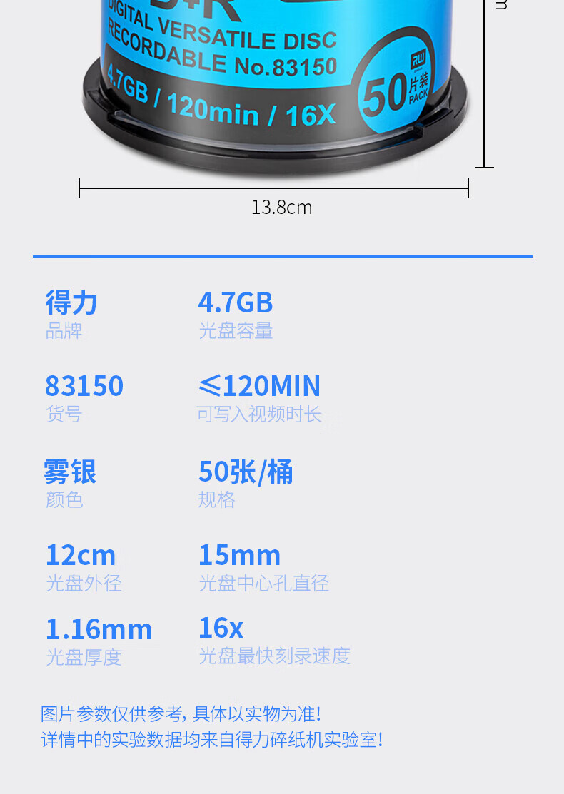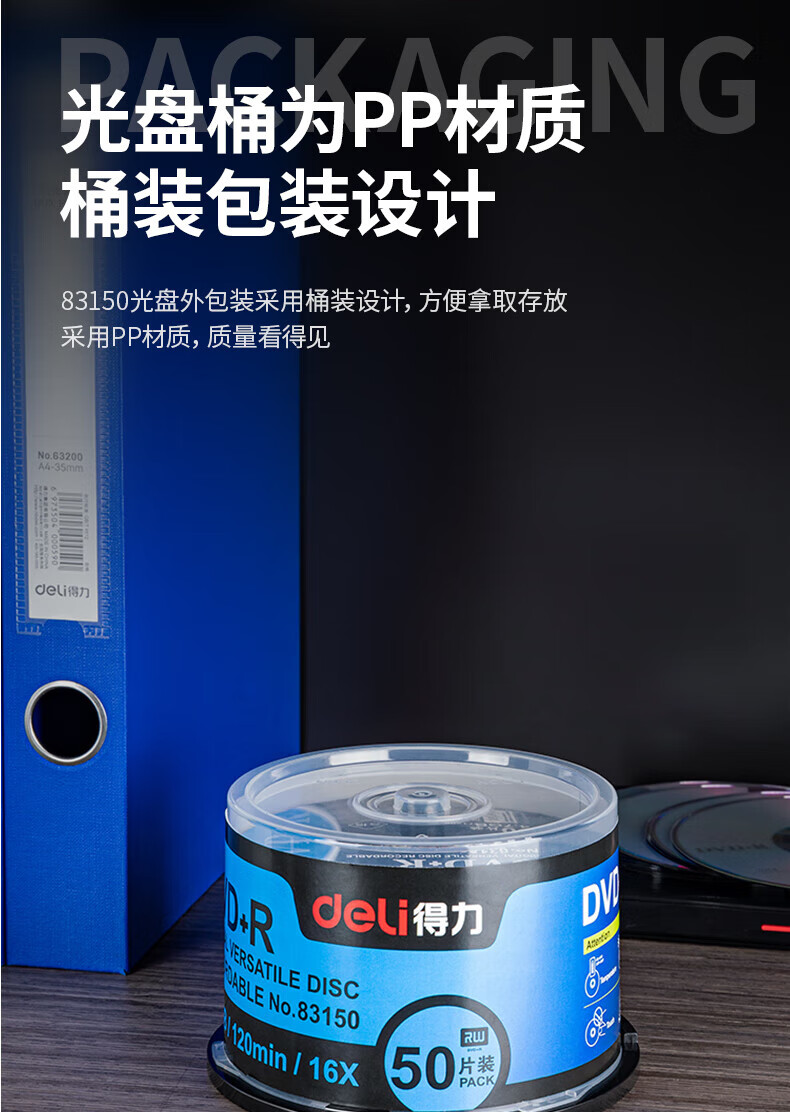 商品名称:得力 83150光盘DVD+R 4.7G (50片/桶)