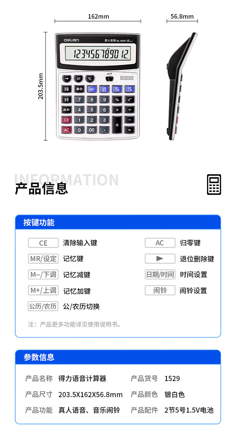 商品名称:得力 DL-1529计算器