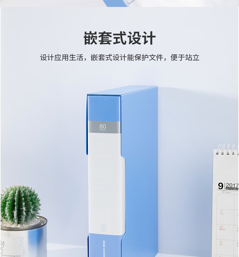 商品名称:得力5006ES 嵌套式资料册A4-80页(附外壳)透明插页袋