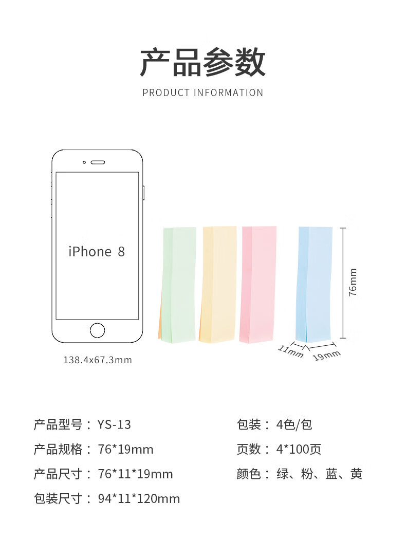 商品名称:晨光 YS-13彩色便利贴4分条76*19mm