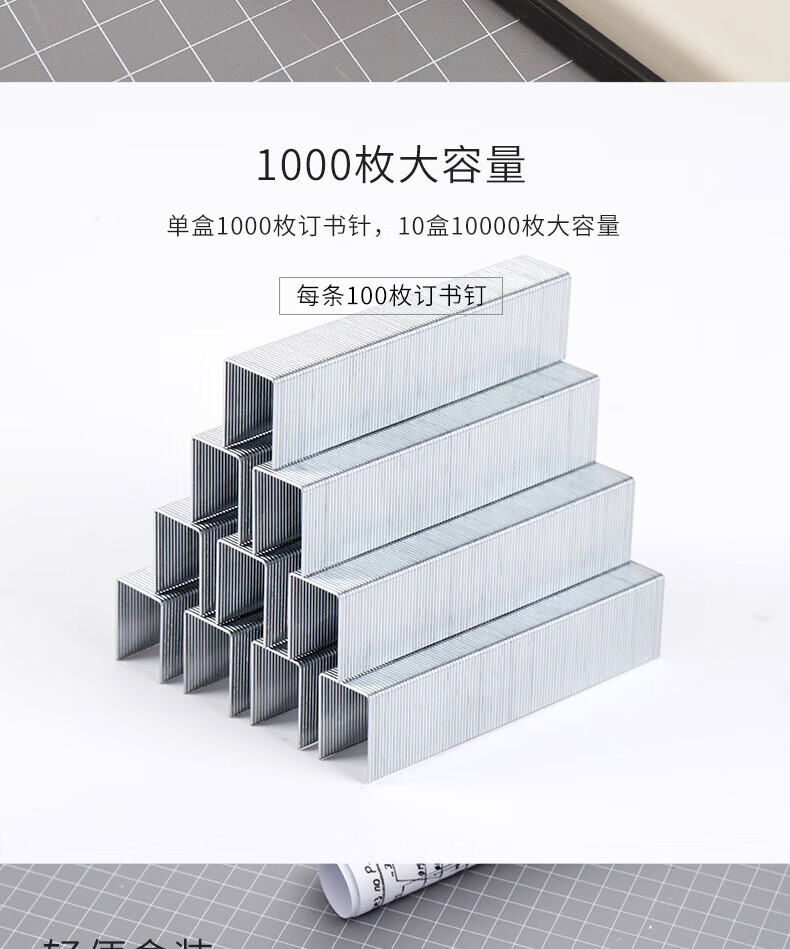 商品名称:得力 0213不锈钢厚层订书钉1盒(1000枚)23/13