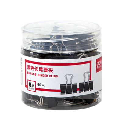 商品名称:得力 8566黑色长尾票夹6#15mm 60只/简(黑)