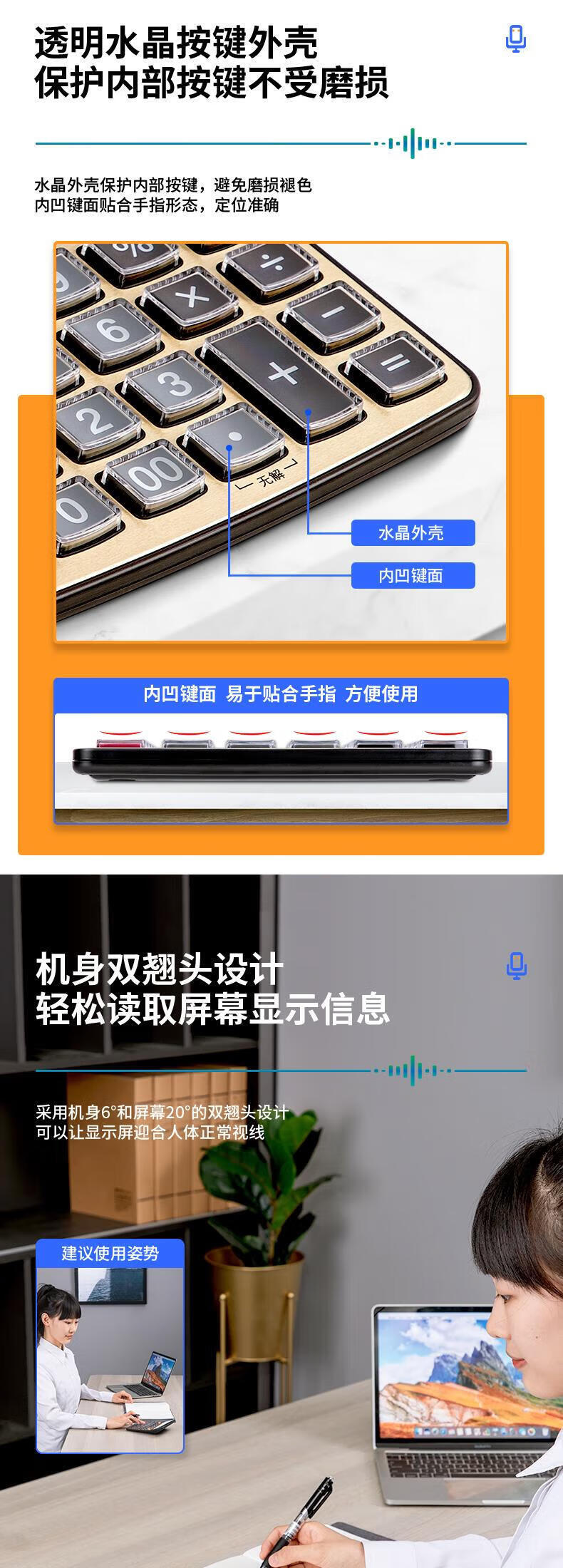 商品名称:得力 27560语音计算器12位显示大屏金色面板真人语音