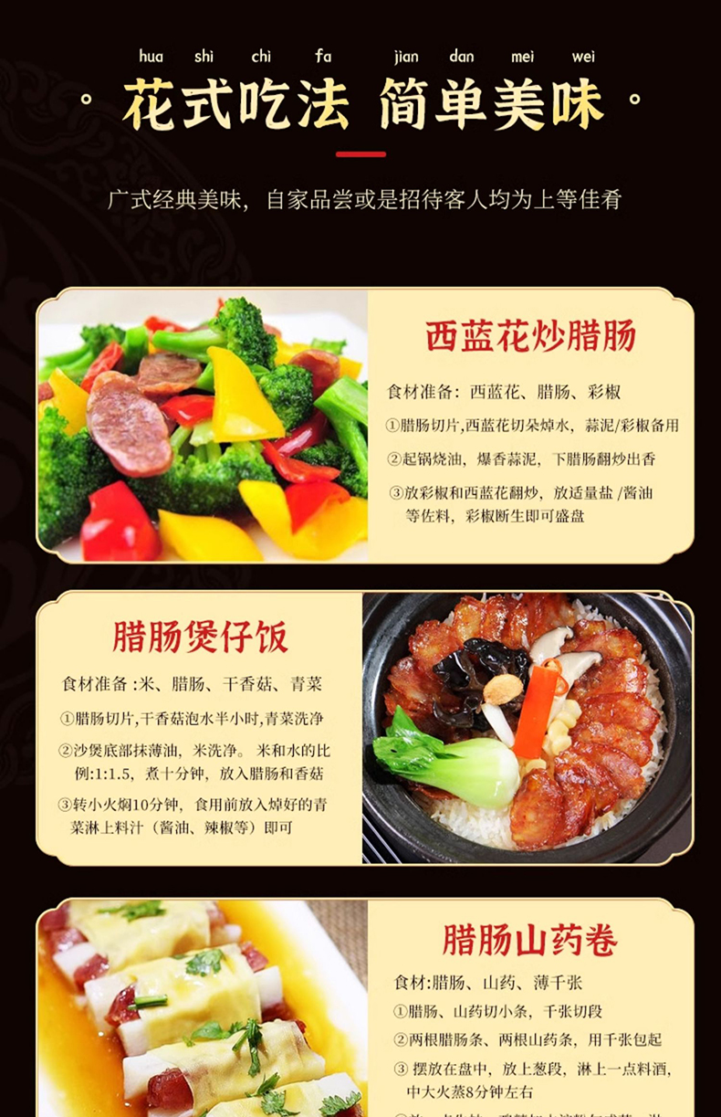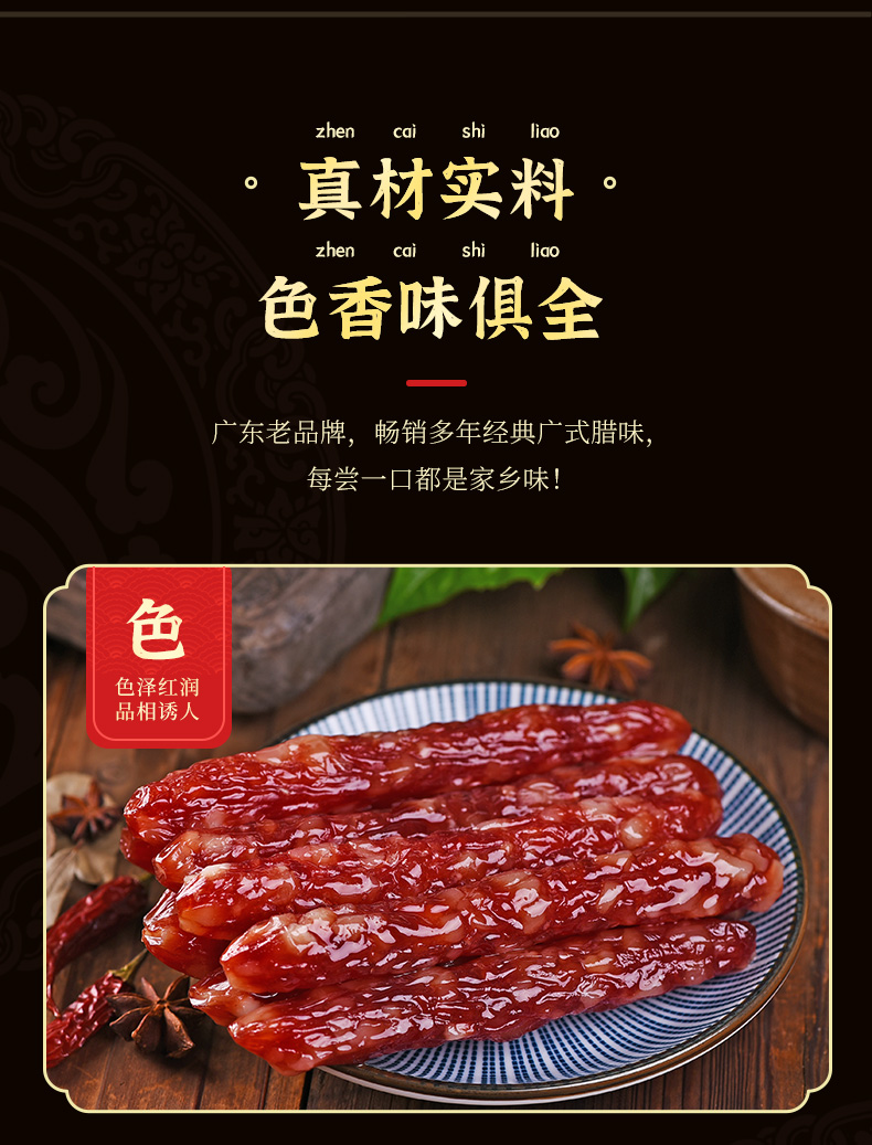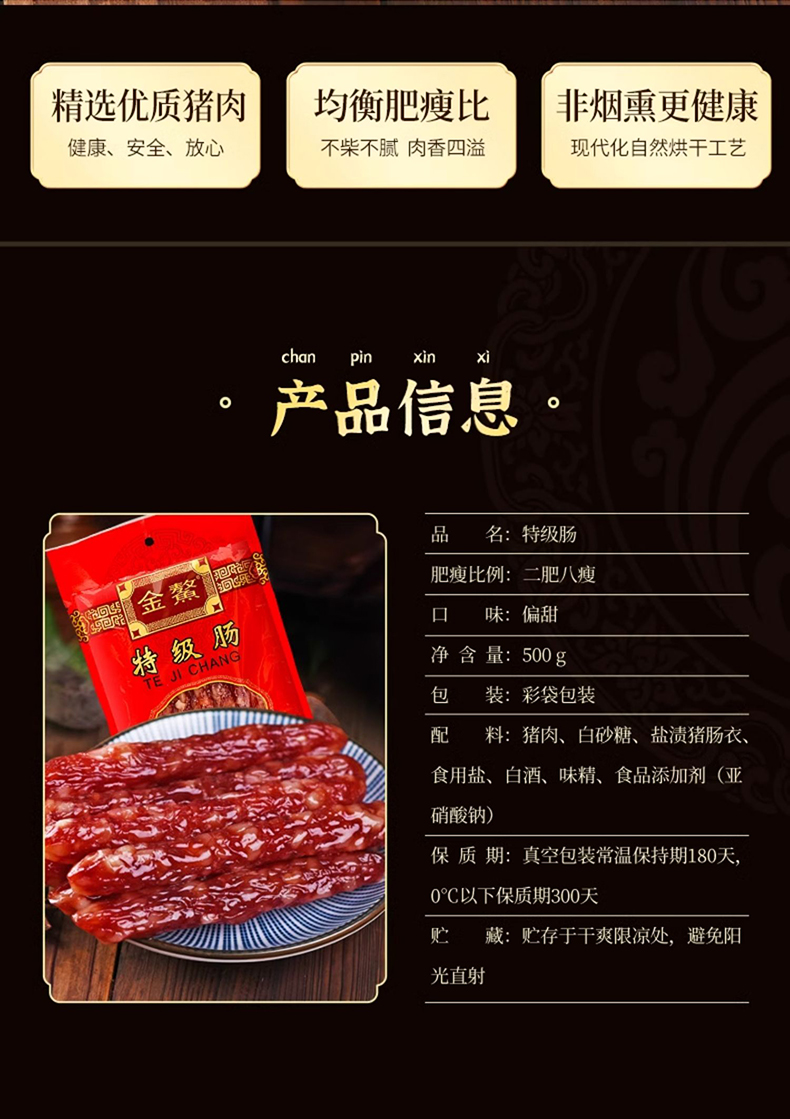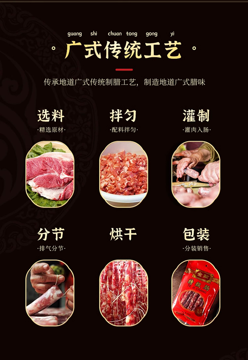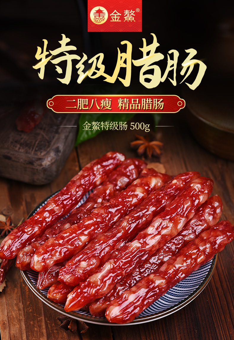 商品名称:金鳌 东莞腊肠 广东东莞特产 广式腊肠腊味 特级腊肠500g