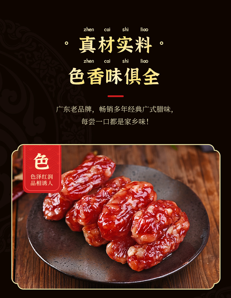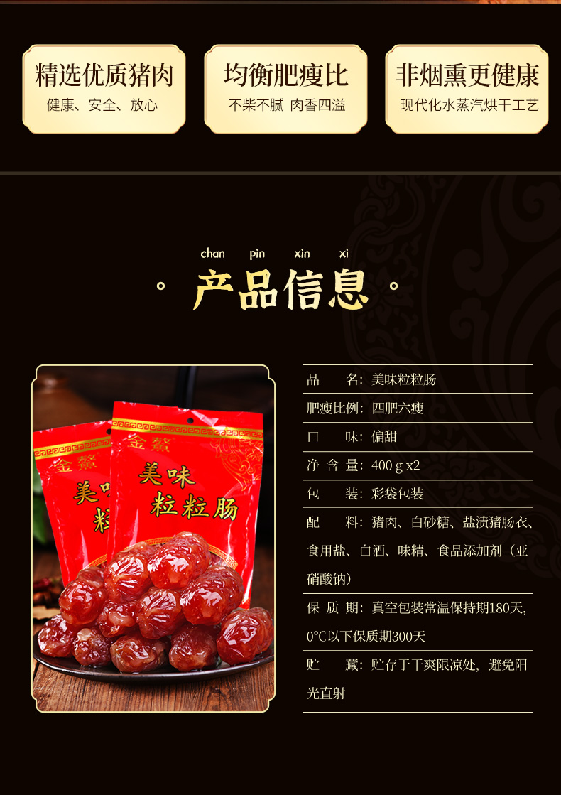 商品名称:金鳌 东莞腊肠 广东东莞特产 广式腊肠腊味 美味粒粒400g*2