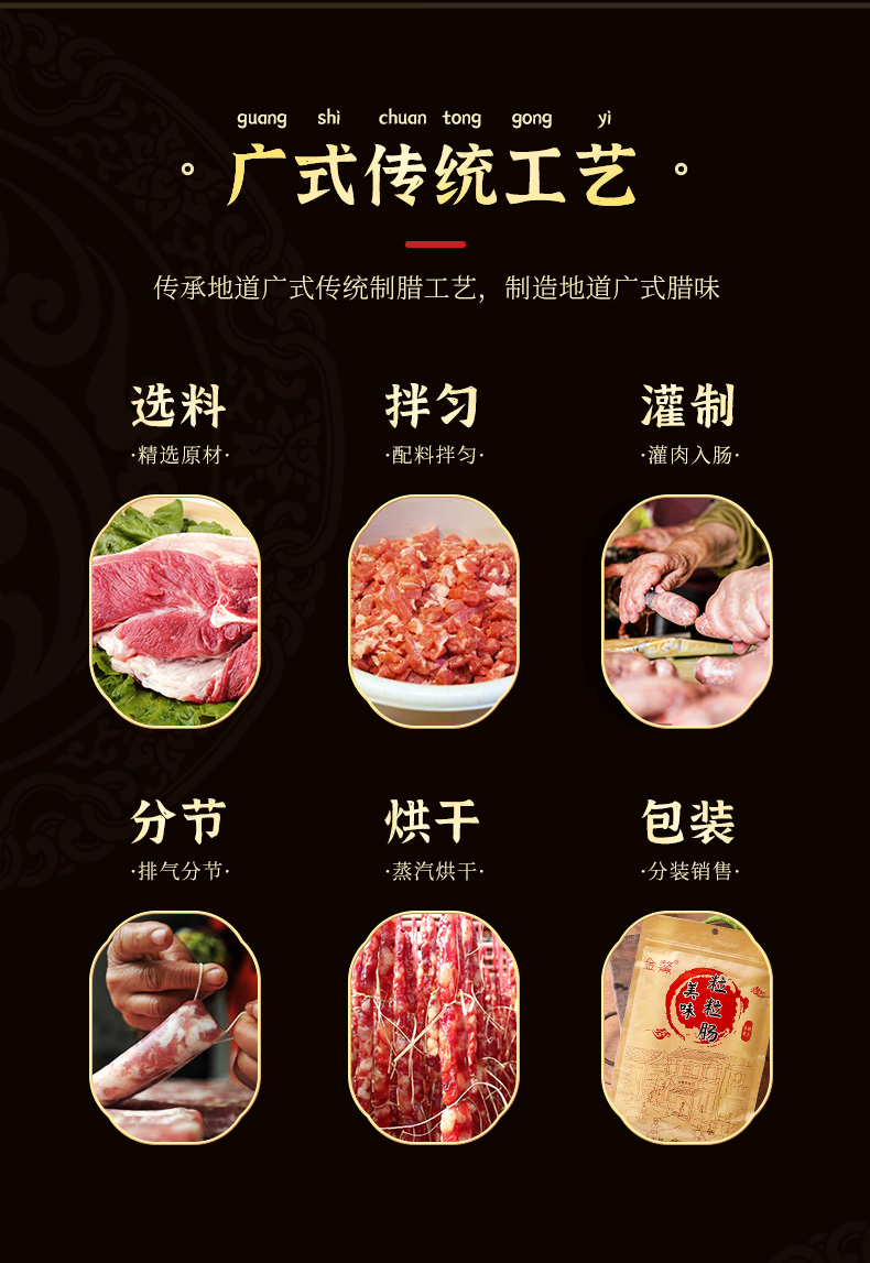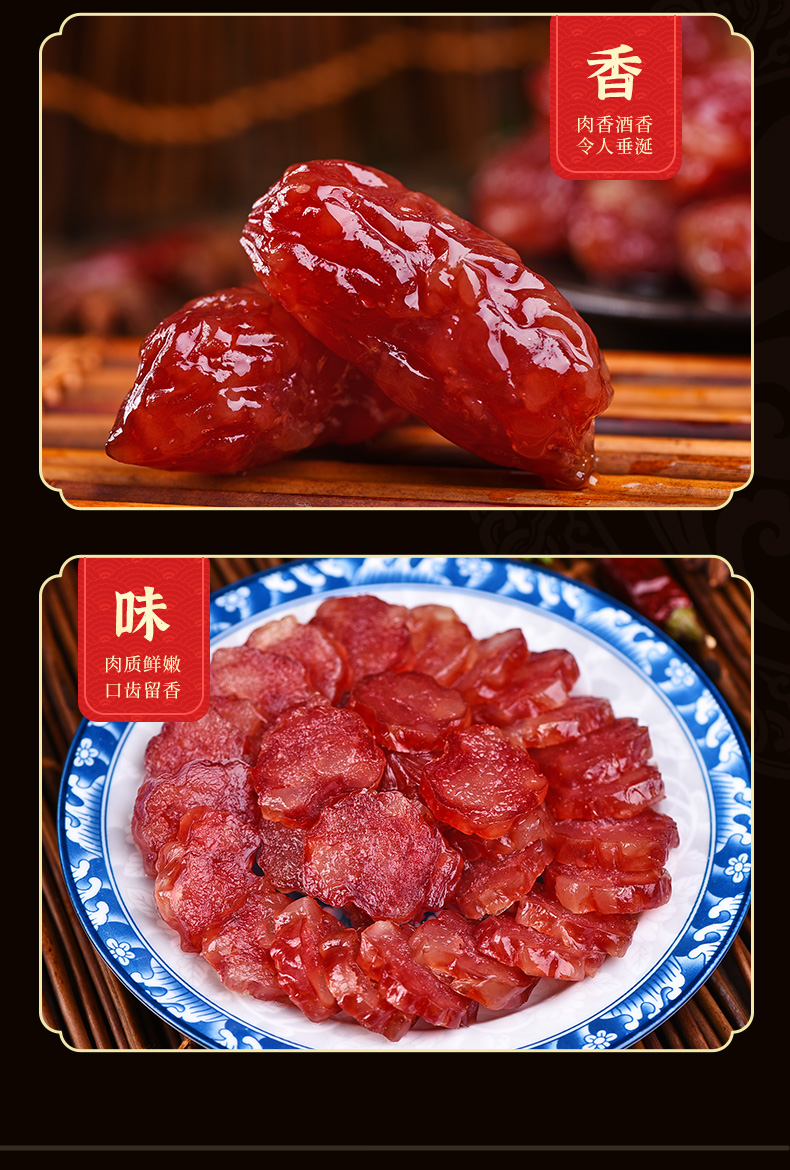 自营金鳌 东莞腊肠 广东东莞特产 广式腊肠腊味 美味粒粒400g*2