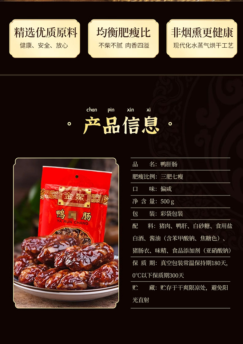 商品名称:金鳌 鸭肝肠500g 广味东莞广式鸭润腊肠广东香肠腊味特产风干7分瘦